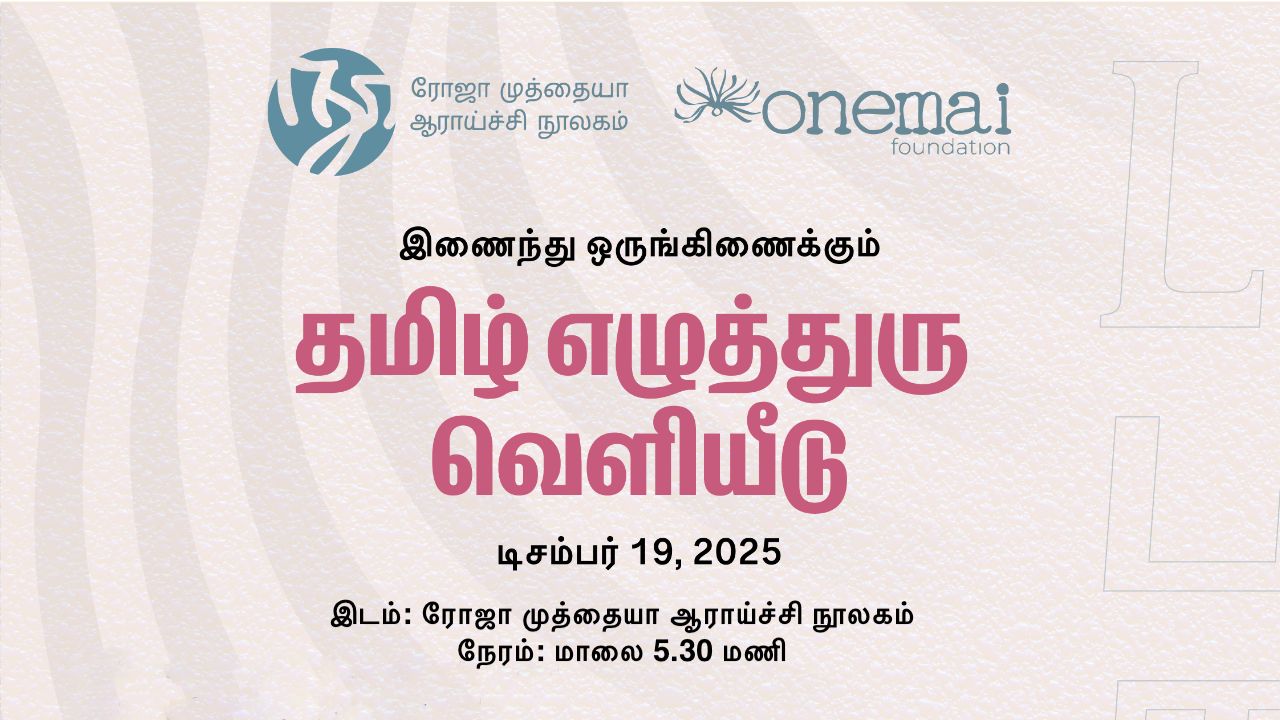 RMRL Tamil Font Studio is an initiative created by the RMRL Trust with funding from Onemai Foundation. It is a two-year project to create and celebrate Tamil typefaces. With the mentorship of leading Tamil Typeface designer Muthu Nedumaran, the TFS team explores areas of font-making that incorporate Tamil ethos and writing methods. The focus will be on developing fonts/typefaces scientifically and aesthetically, meeting international standards.